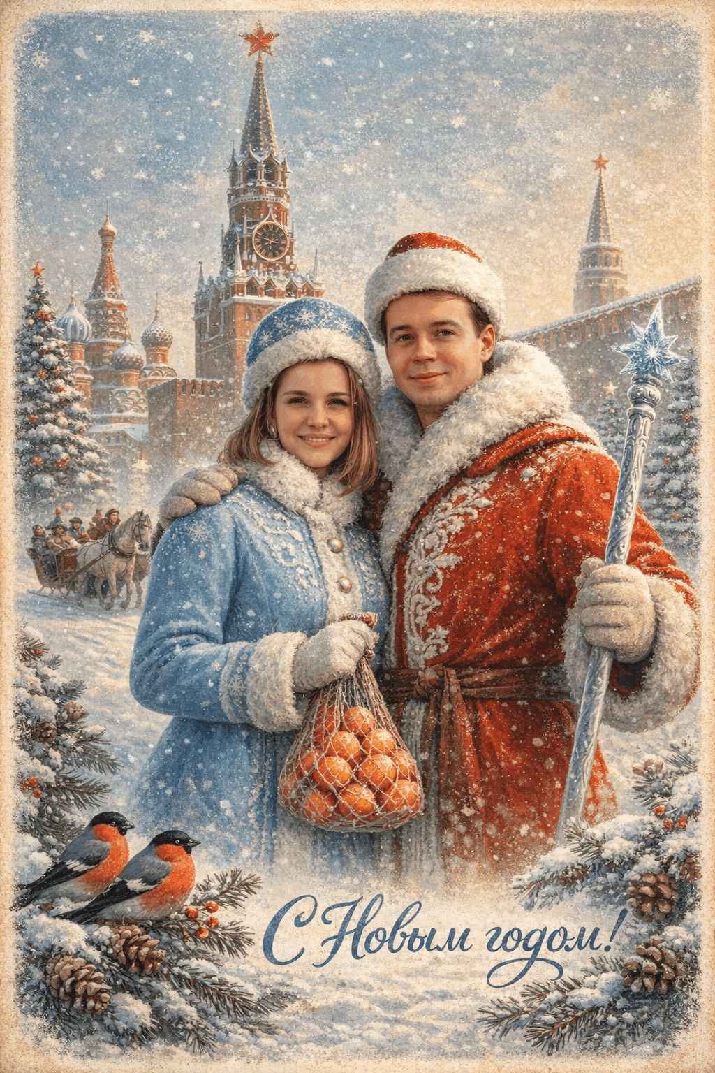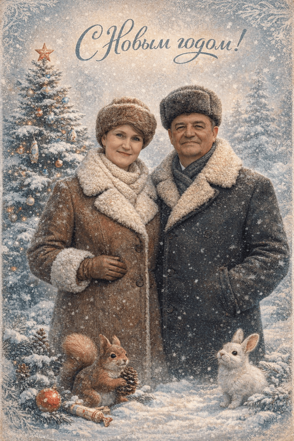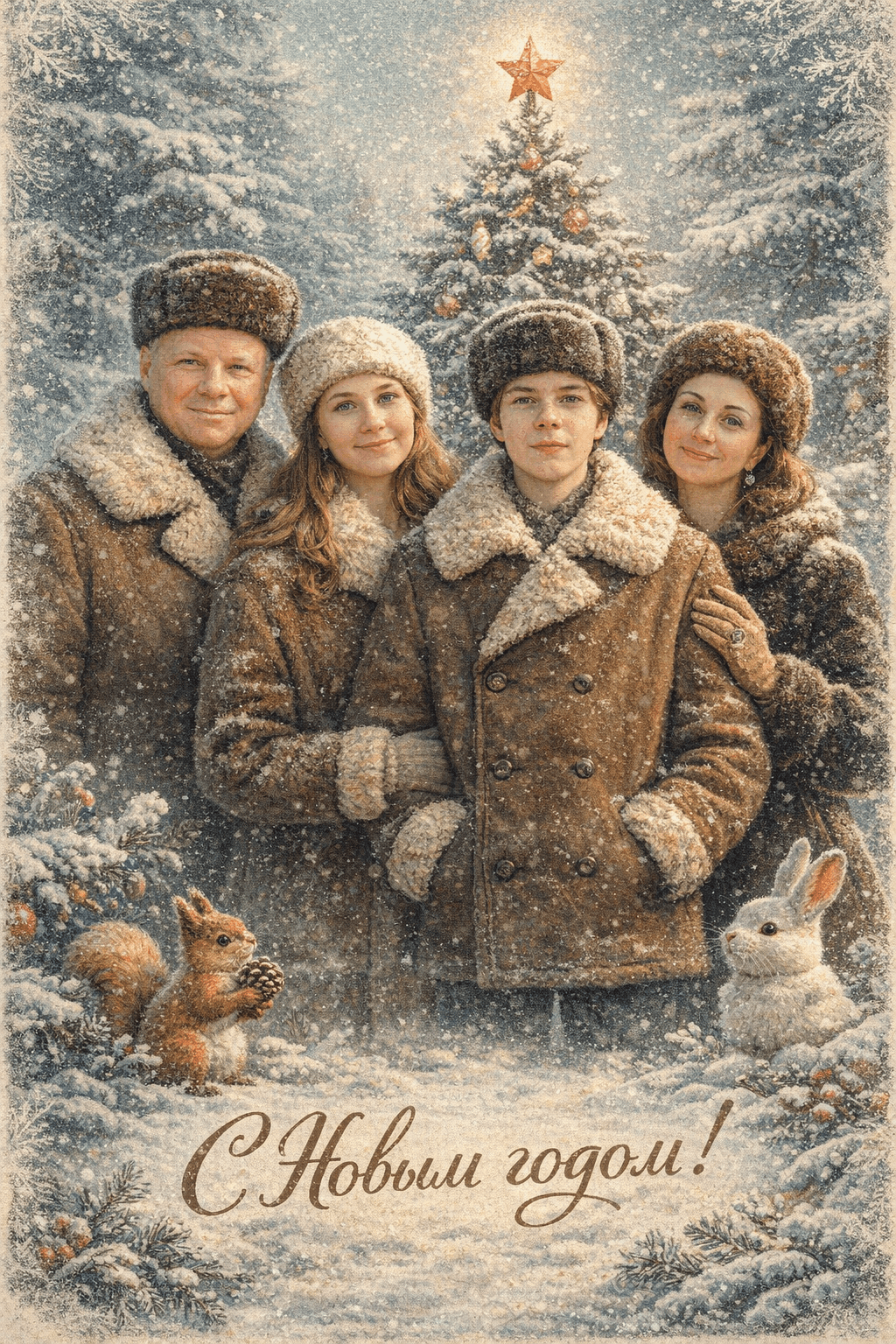 Загрузите фотографию и получите уникальную ретро-открытку в стиле СССР за несколько секунд